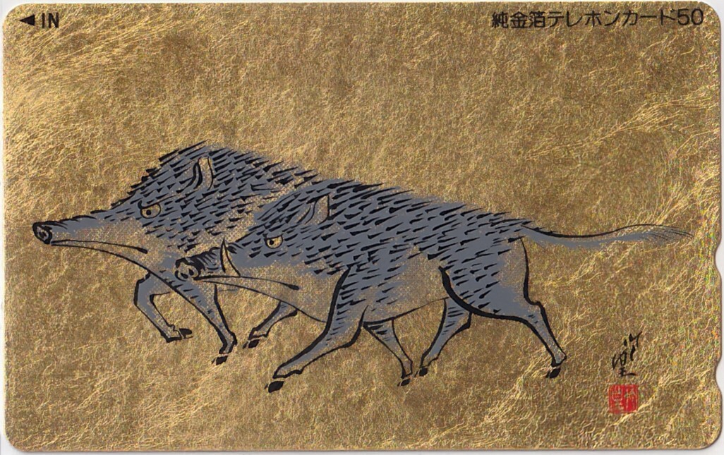 - =猪 亥= 「純金箔〜毛灰色」販売テレカ #w
