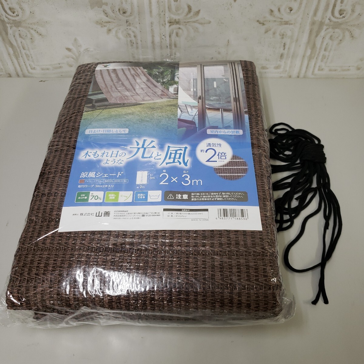 - 709y1910★山善(YAMAZEN) 日よけシェード 200×300㎝ 水洗い可能 ハトメ8箇所 UVカット率約75% 取付ロープ3m×2本入り BRGS-2030