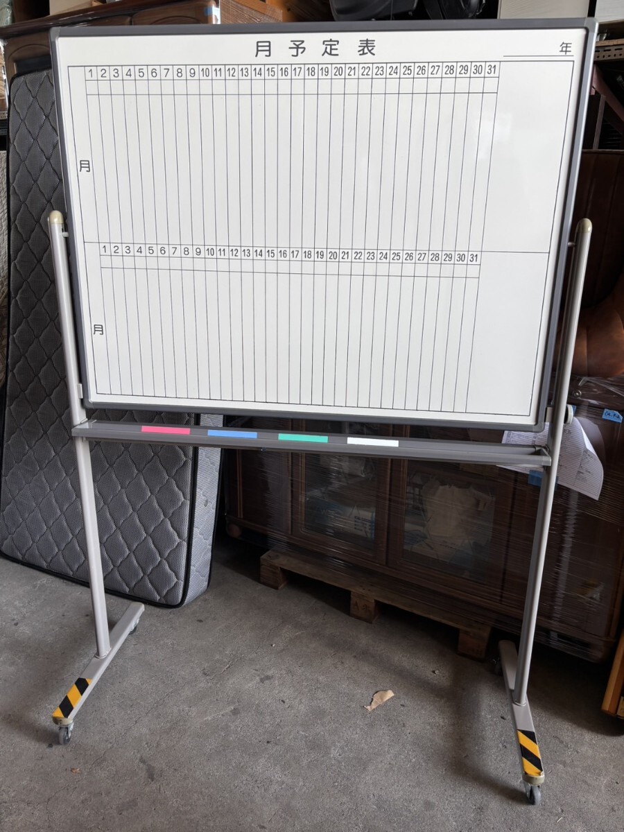 - 630☆【引き取り限定】 月予定表/ ホワイトボード/ 両面/ キャスター付/ 事務用品/ストッパー付き/ 回転式 /オフィス