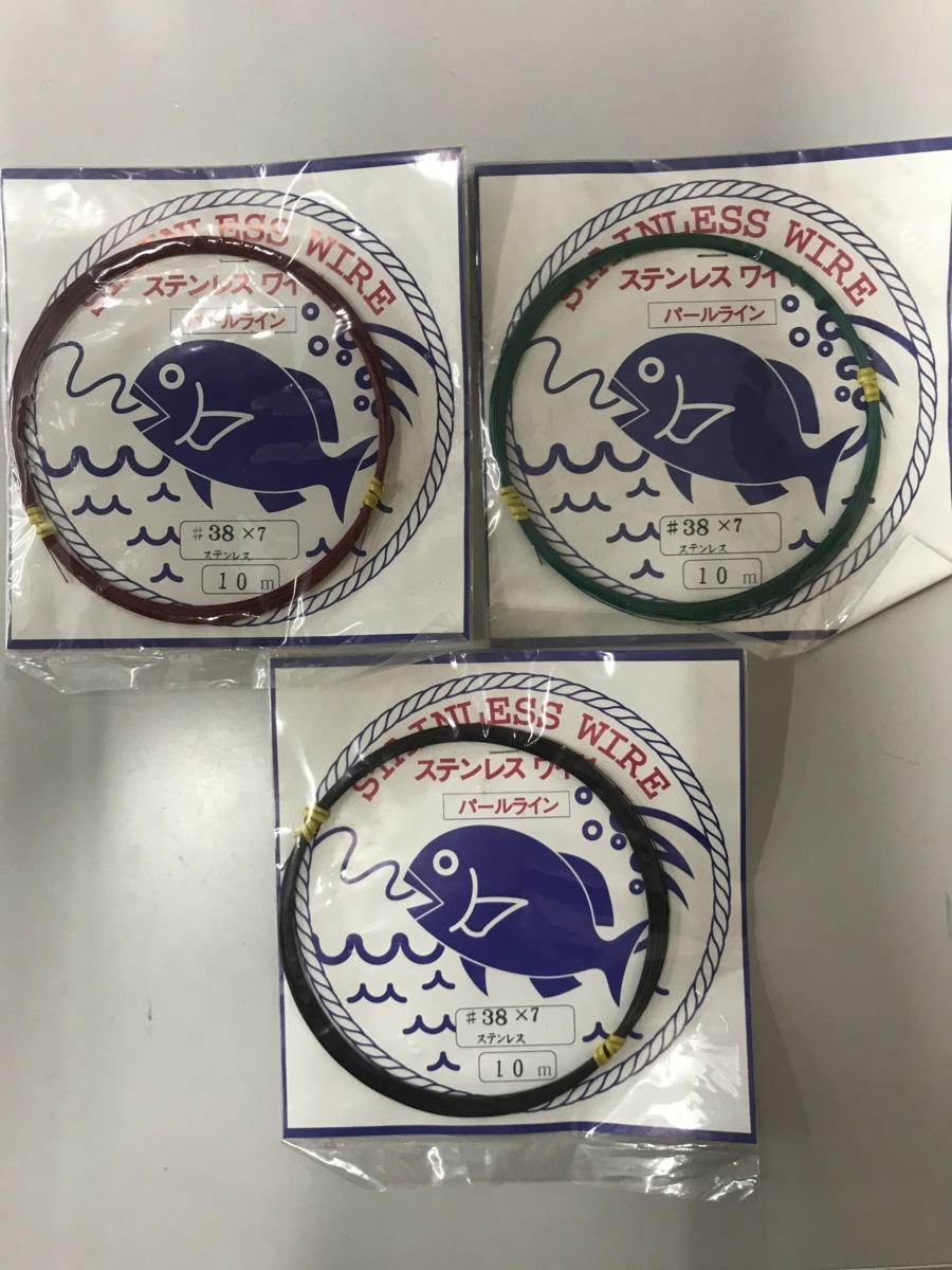 - ステンレス ワイヤ パールライン #38×7 各 10m ( カラー: レッド系・ グリーン系・ ブラック系) 3種3点 送料無料 L167