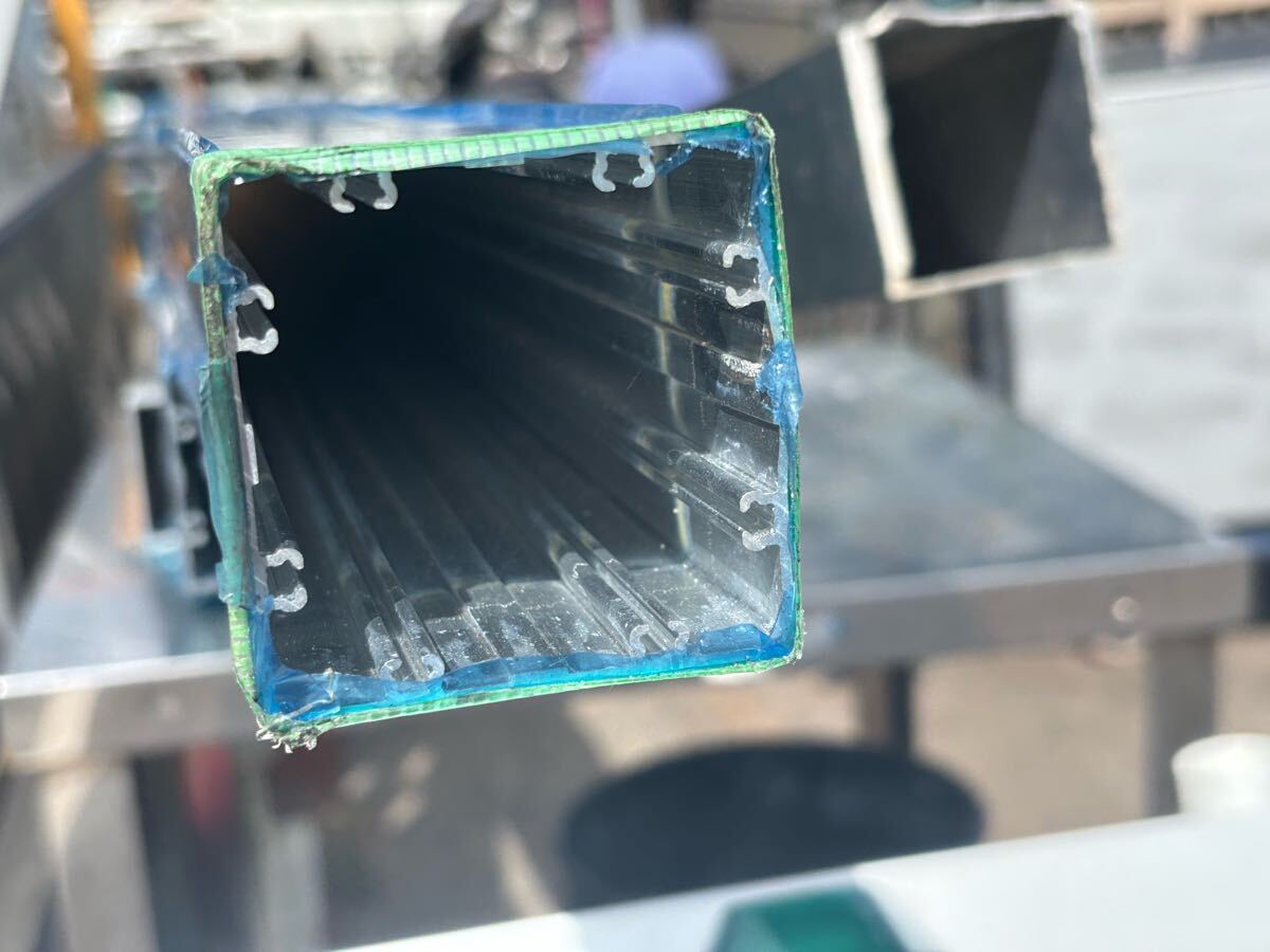 - 1本のみ アルミ 柱 角パイプ 約57x57mm 長約376cm 引取可能 岐阜