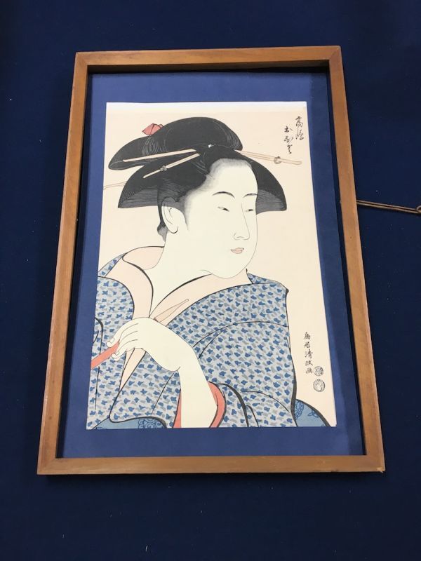 - 《真作》鳥居清政(画)「高嶋おひさ」木板画再版 鳥居清長長男 継承問題で短期で筆を絶つ ガラス額入 4642-5500