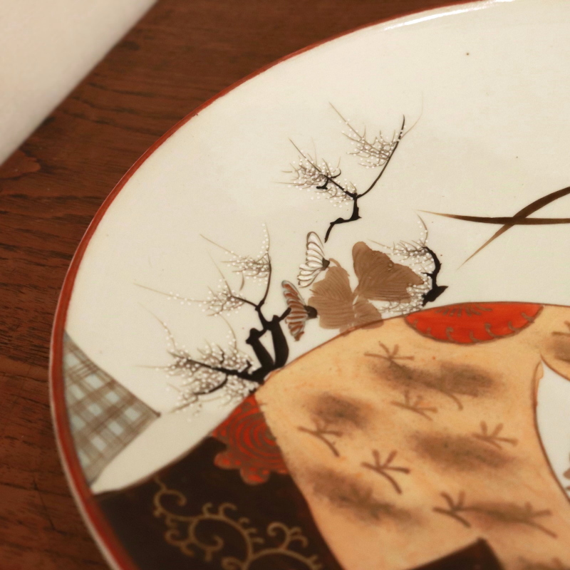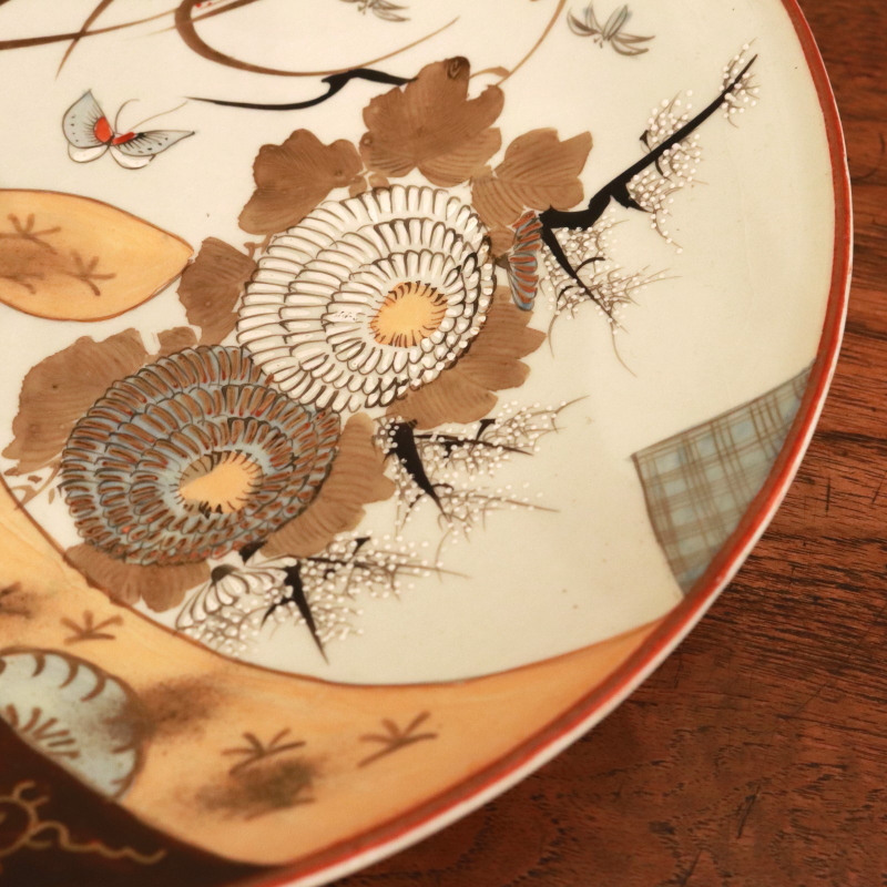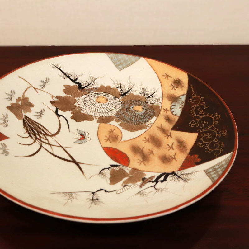 - 205■中皿8寸 九谷焼 花蝶文 金彩