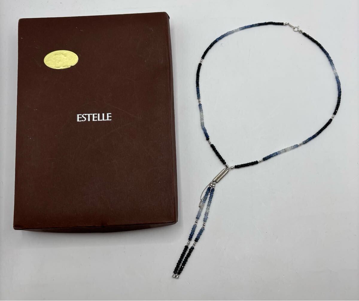 - S119 ネックレス サファイヤ グラデーション ロングネックレス 18.63g バレル型 筒型 マグネット クランプ ジョイント K18WG ブルー