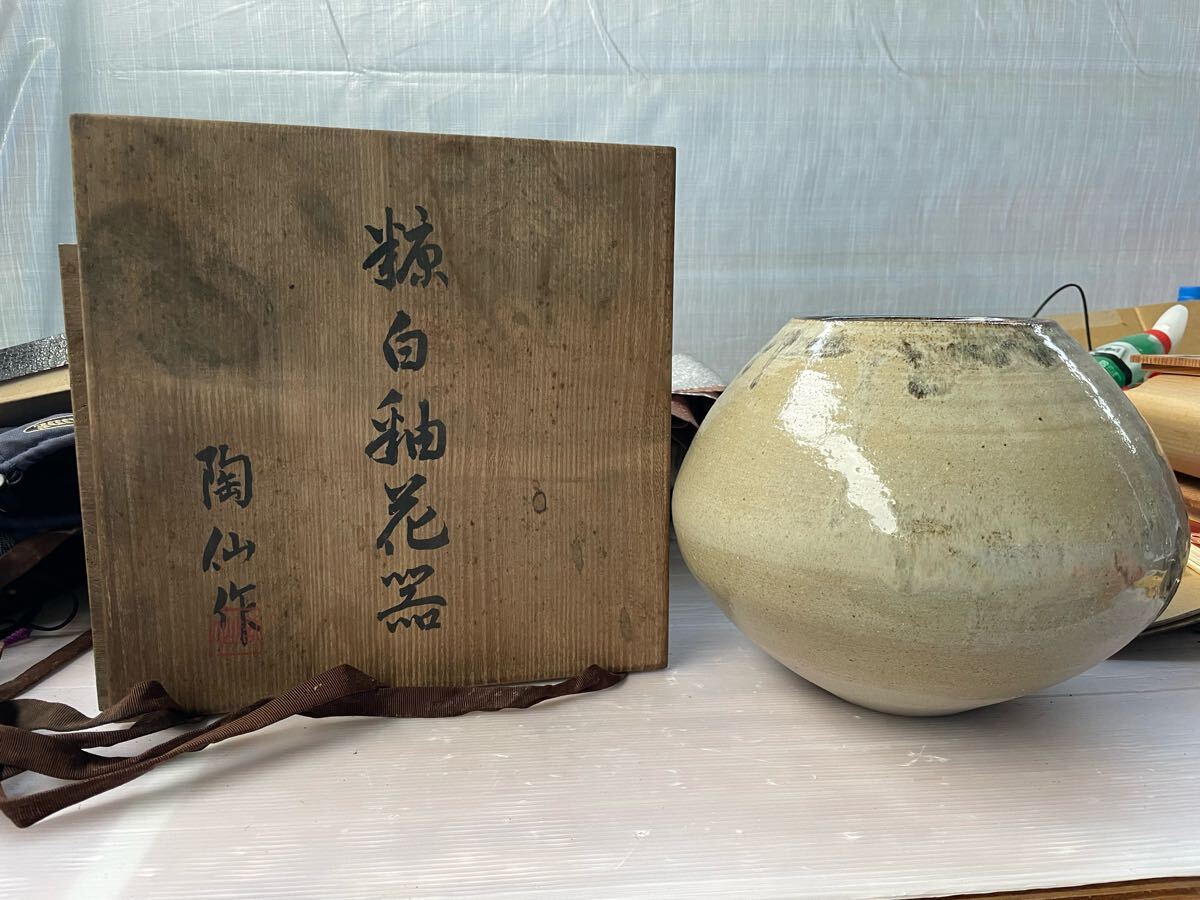 - 糠白釉花器 陶仙作 花瓶 花器 花入 陶器 フラワーベース 昭和レトロ昭和59年