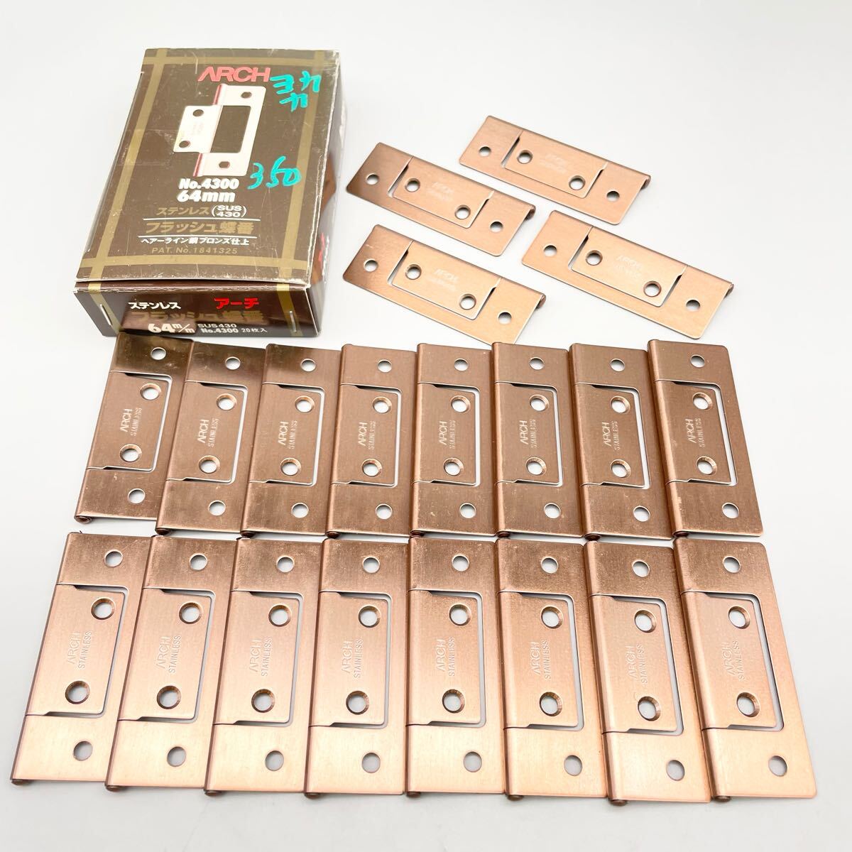 - [送料全国一律360円] アーチ フラッシュ丁番 No.4300 64mm ブロンズ 20枚 ステンレス 蝶番 家具 棚 ヒンジ ARCH 金物屋 在庫 まとめ 未使用
