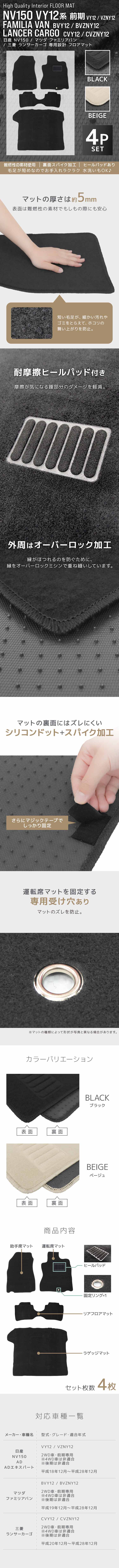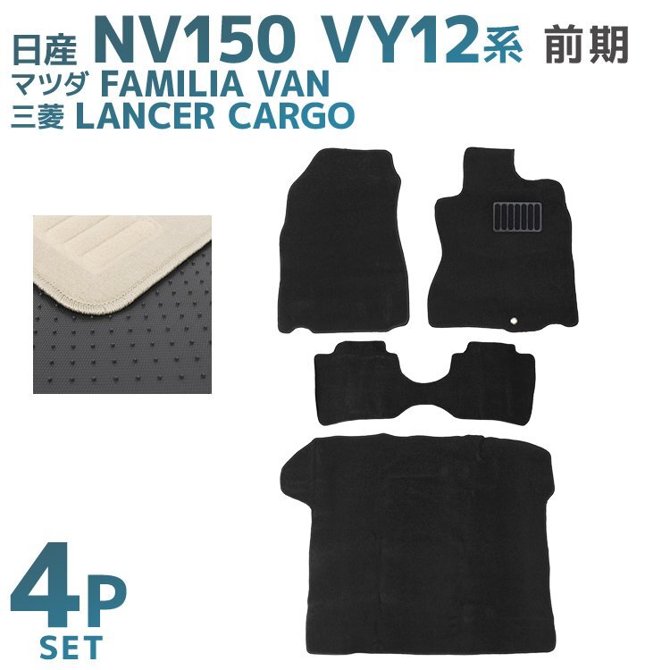 - フロアマット 4点セット 日産 NV150 ADバン VY12系 ファミリアバン ランサーカーゴ Y12系 カーマット 難燃性素材 ヒールパット ベージュ