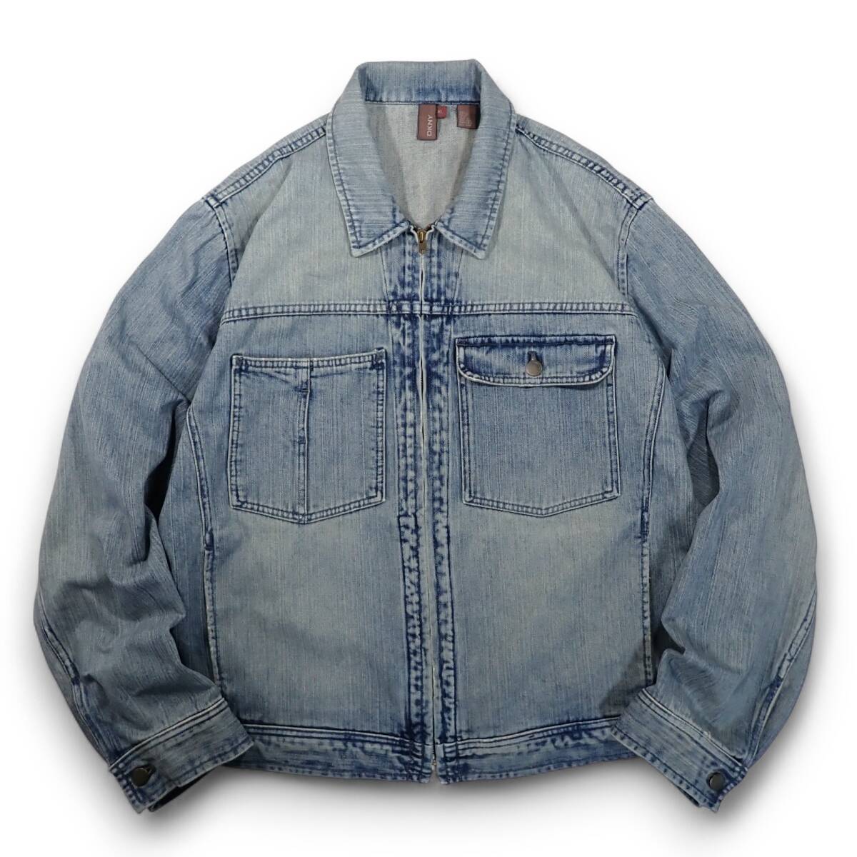 - 7058/良好 DKNY pure フルジップ デニム ジャケット XL●Y2Kビンテージ加工 ジージャンGジャン ガチャポケ ダナキャラン●洗濯プレス済古着