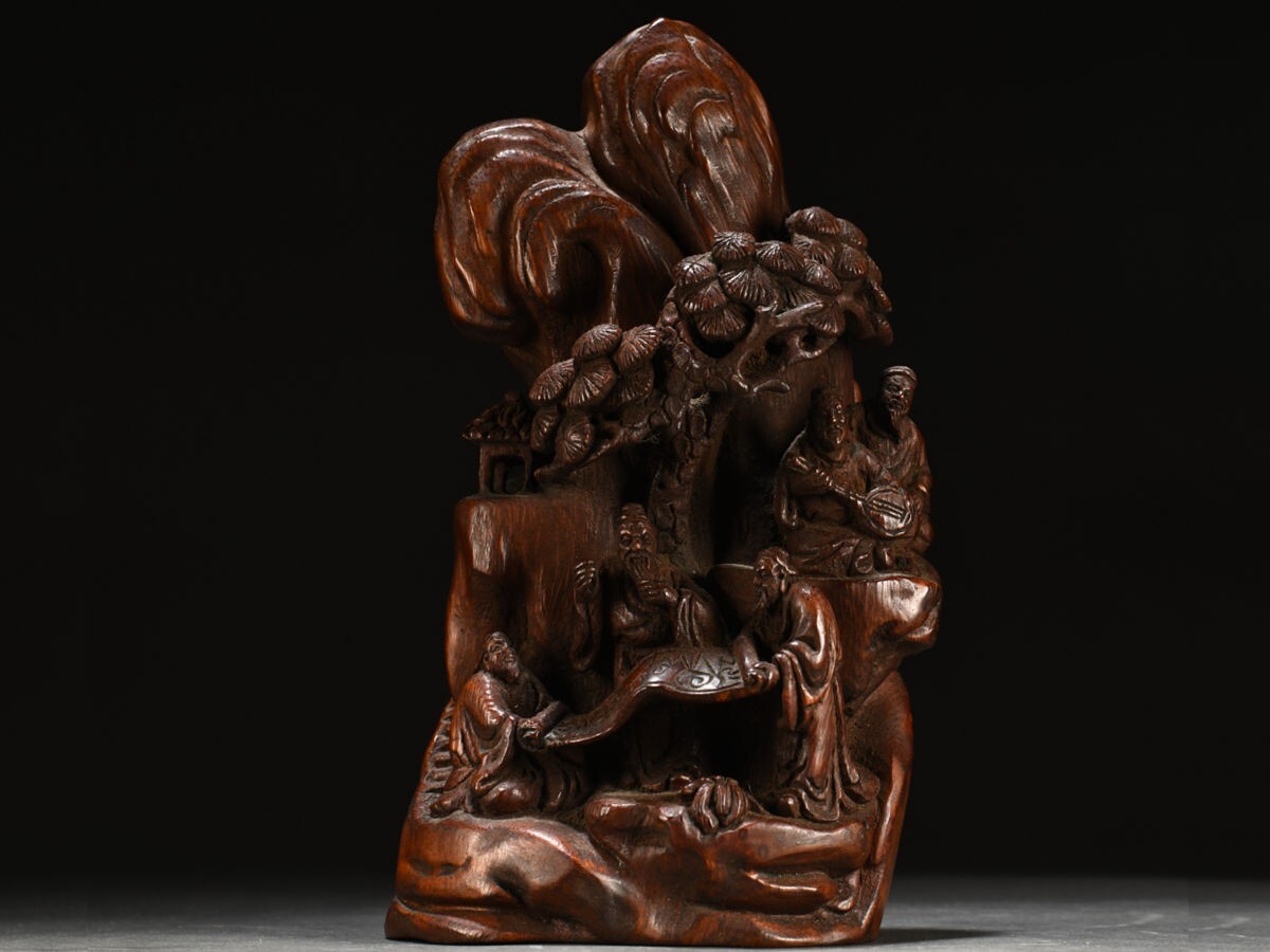 - 「清時代 老竹 鏤空彫り 五老図 山子擺件」極細工 擺件 賞物 中国古美術 旧蔵出