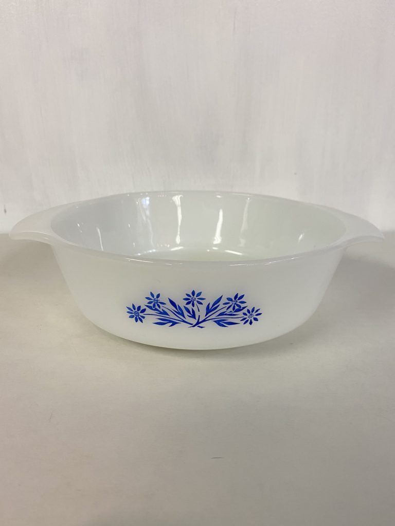 - 1960s ファイヤーキング キャセロール ブルーコーンフラワー★ ビンテージ 60s アンティーク ブルーフラワー 皿 ミルクガラス 耐熱 花柄