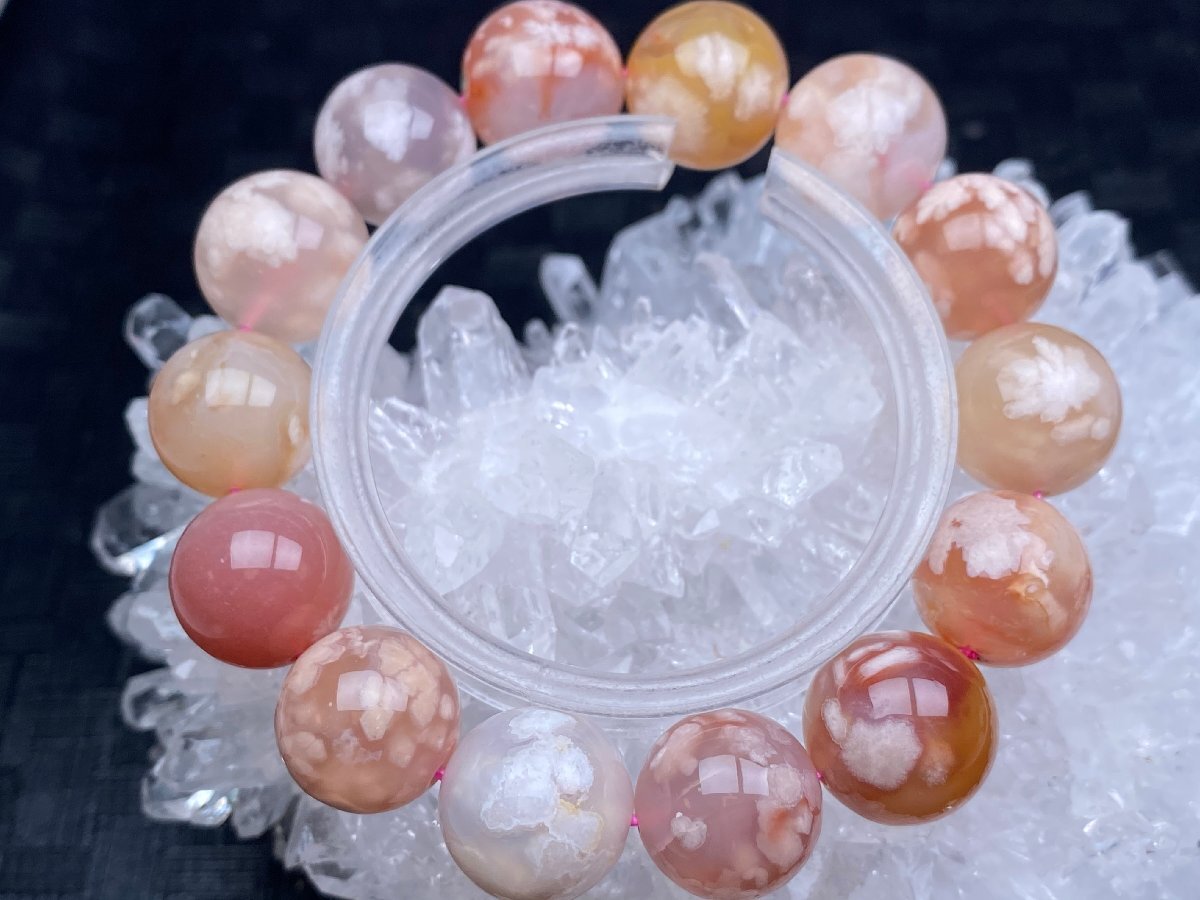- 即決 0616k592 天然美品 ★【チェリーアゲートさくら瑪瑙(メノウ)】★ブレス 15-16mm(新品)