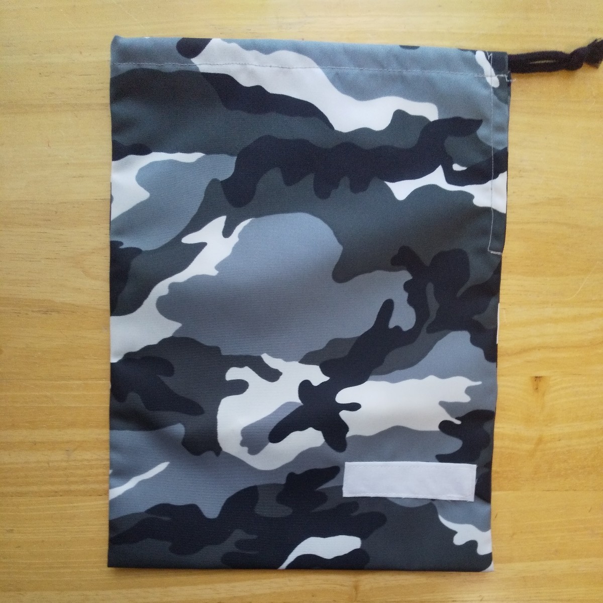 - 上履き袋「灰黒迷彩」サイズ 30.5×23.5㎝ ネーム白布付き