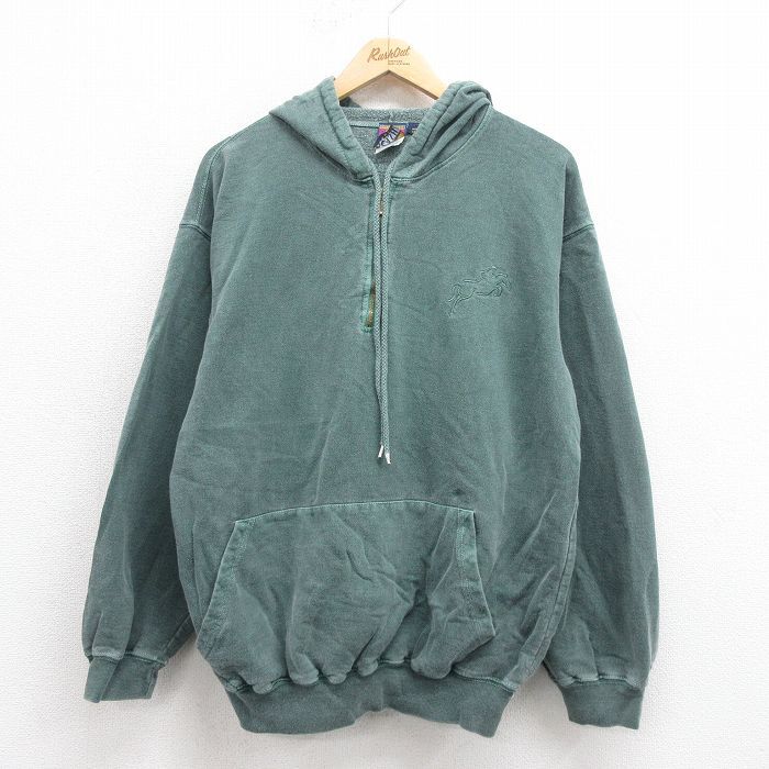 > XL/古着 長袖 ハーフジップ スウェット パーカー メンズ 00s 馬 コットン 緑 グリーン 25sep17 中古 スエット トレーナー トップス
