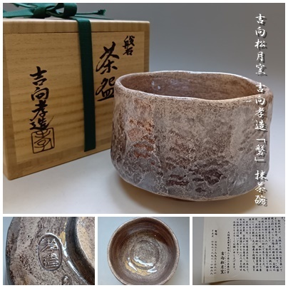 - 【M-135】吉向松月窯 吉向孝造 「磐」 抹茶碗 共箱付 茶道具