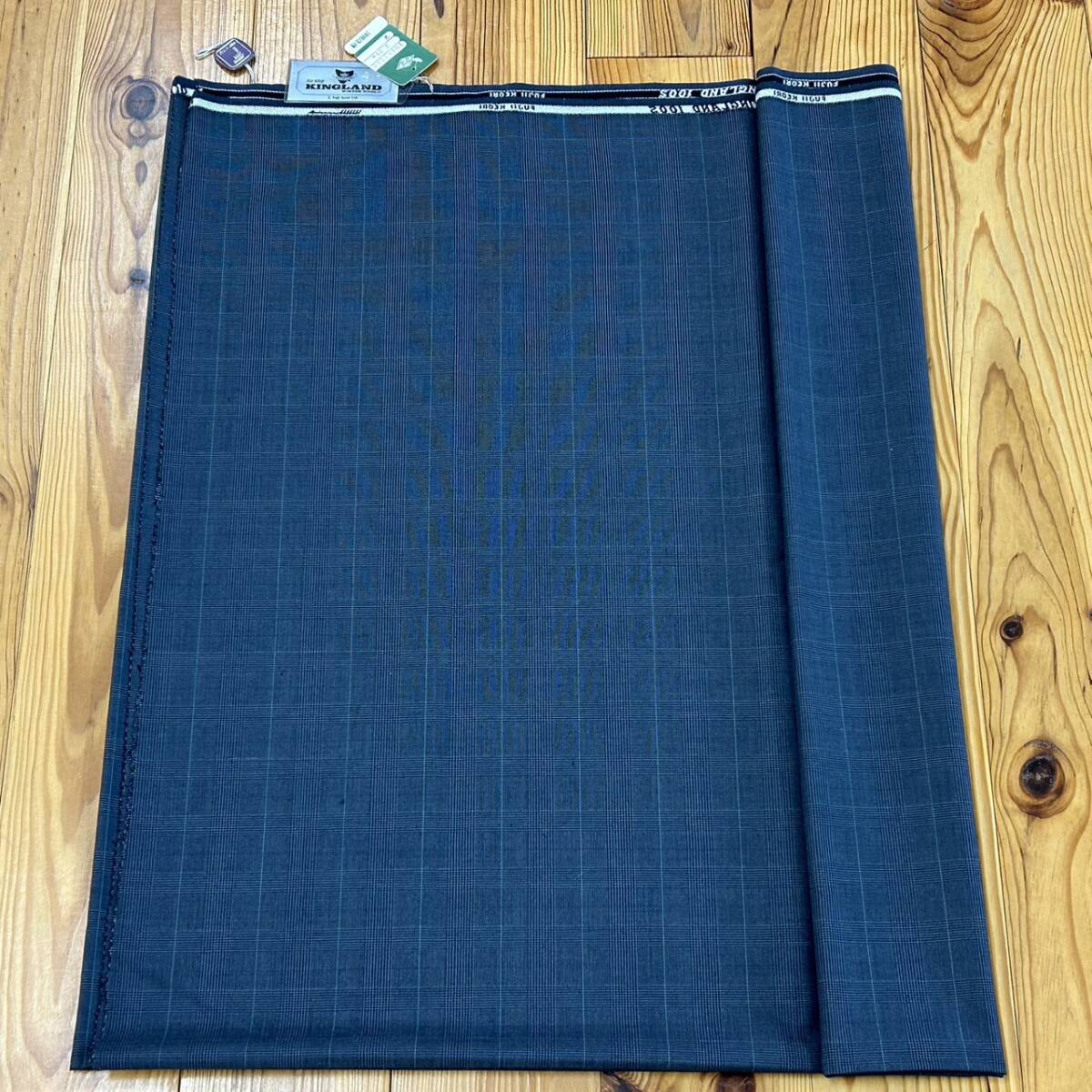 > KIS/041098-7/3000/P094-114/【名古屋】生地 服地 布 FUJII KEORI 藤井毛織 KINGLAND 100S WINTON WOOL 17 チェック ネイビー系