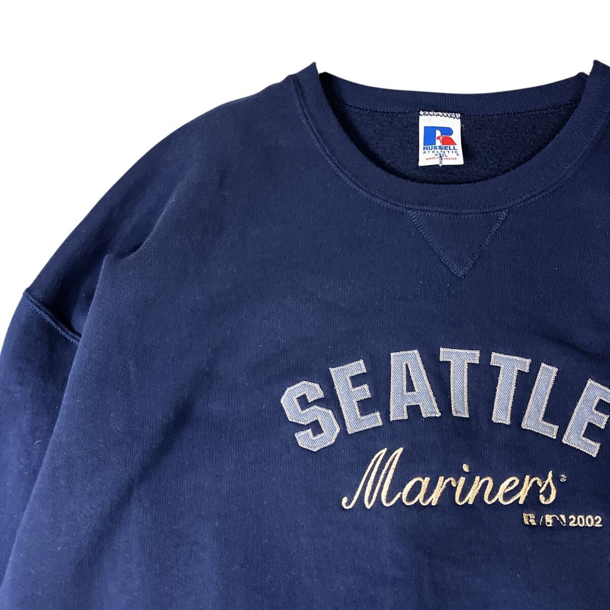 > ラッセル製 00s スウェット MLB シアトルマリナーズ カレッジ風ロゴ ネイビー紺 2XL ビッグシルエット メジャーリーグ