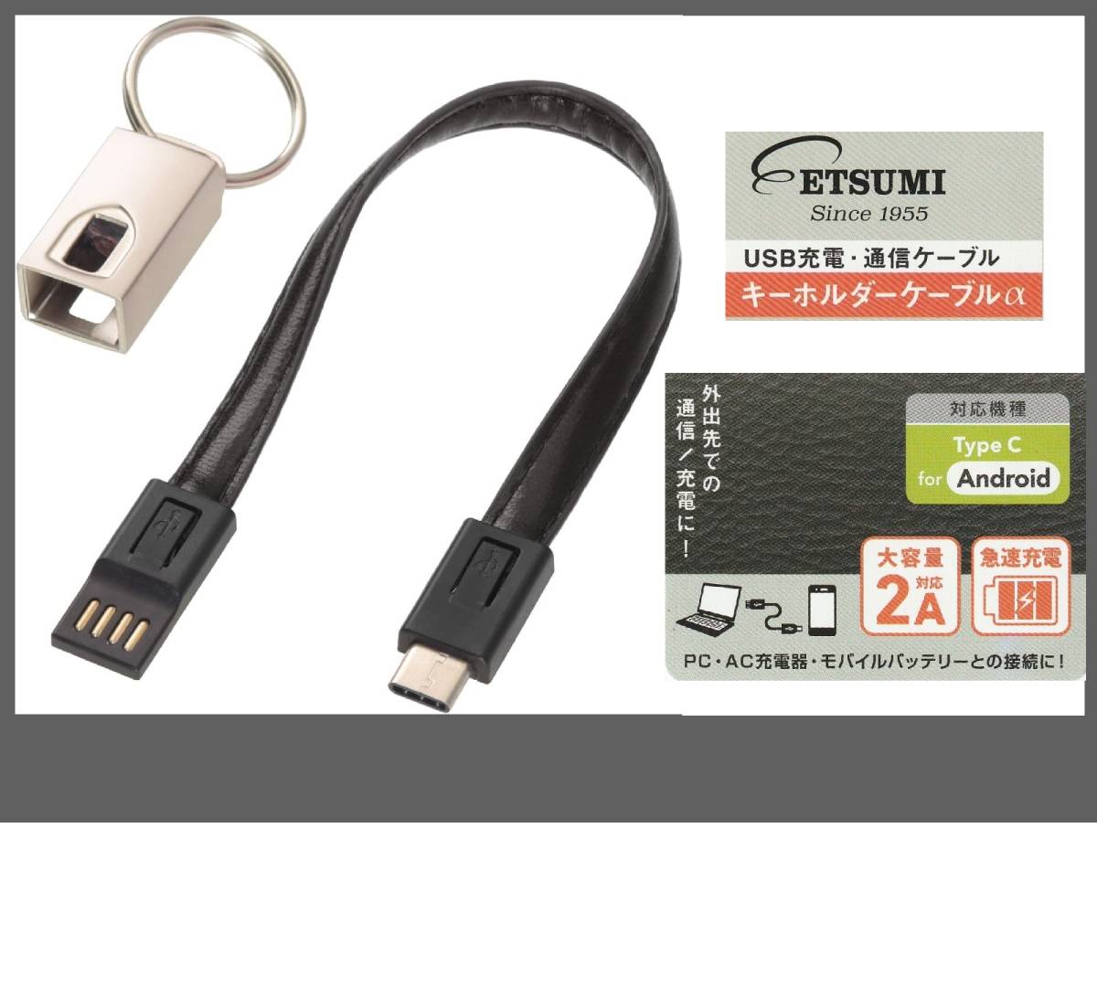 > 送料無料【未使用品】緊急・災害 等の予備に●USB Type-C⇔USBケーブル 20cm 黒 キーホルダ-タイプ■2A 急速充電対応■充電・通信 タイプC