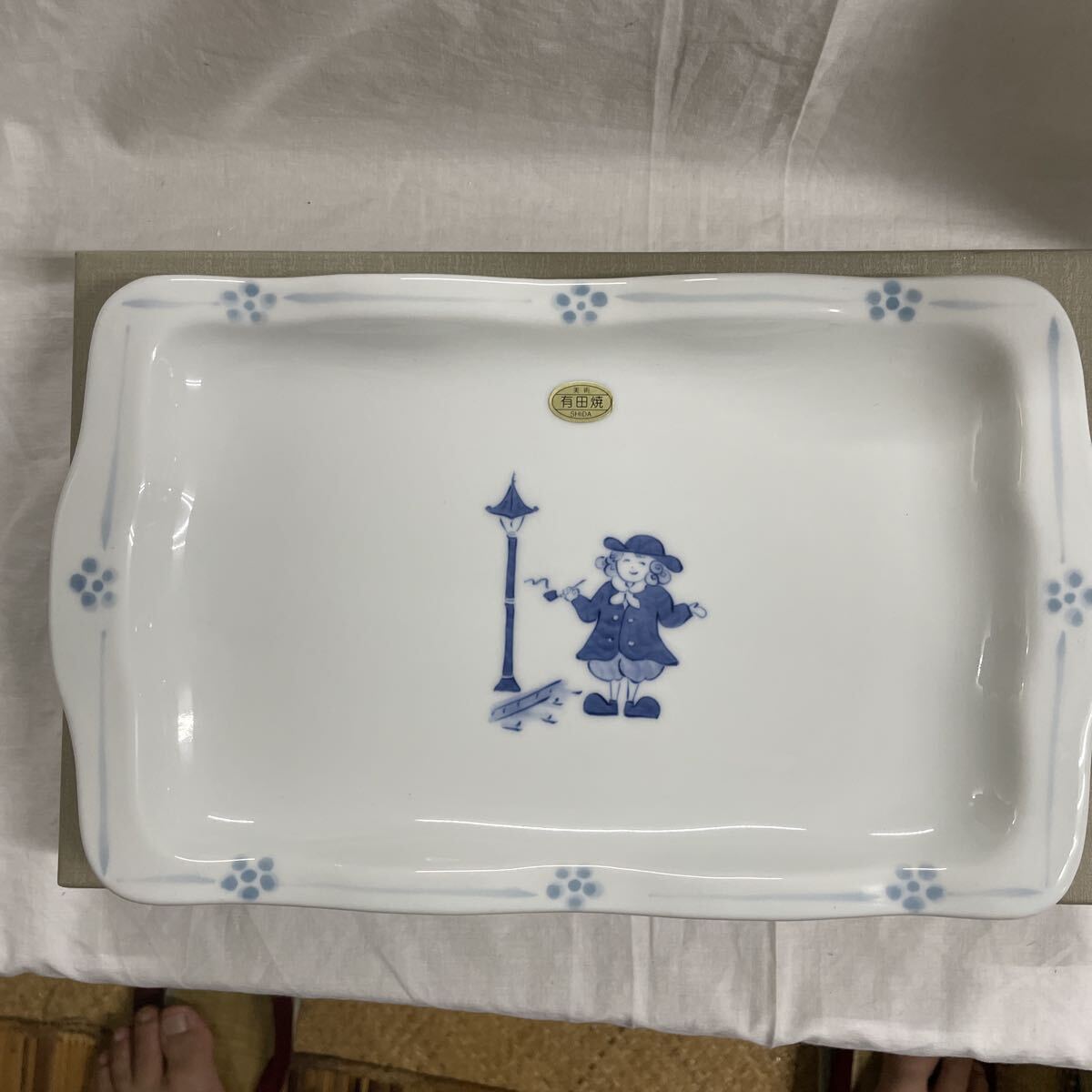 - 有田焼松峰の長角皿 プレート 長皿 食器 有田焼長方形皿 異人さんの絵柄