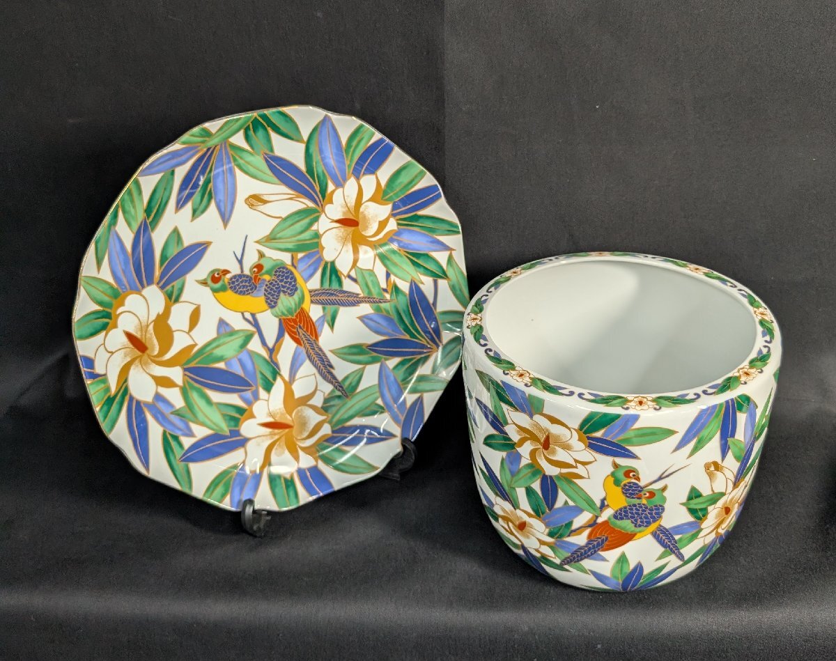 > MIK1870 美濃焼★翔山窯★大皿★花器★陶磁器★色絵★花★鳥★インテリア【1円スタート】