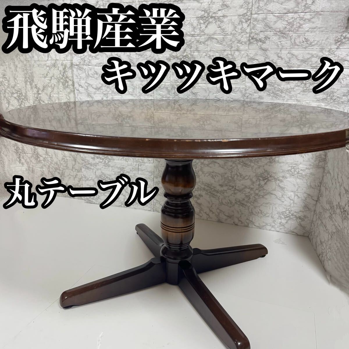 - 飛騨産業 キツツキマーク ダイニング 大型 丸テーブル 天然木 120cm 中丸