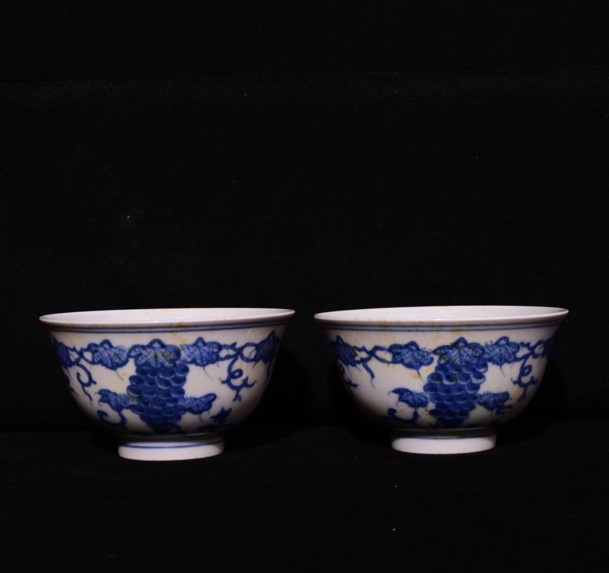 > 9+GV9234「東洋美術」 中国骨董 人間国宝 磁器製品【万子印 青白葡萄文杯】 旧物 孤品 珍品 陶磁器 収蔵価値が高い