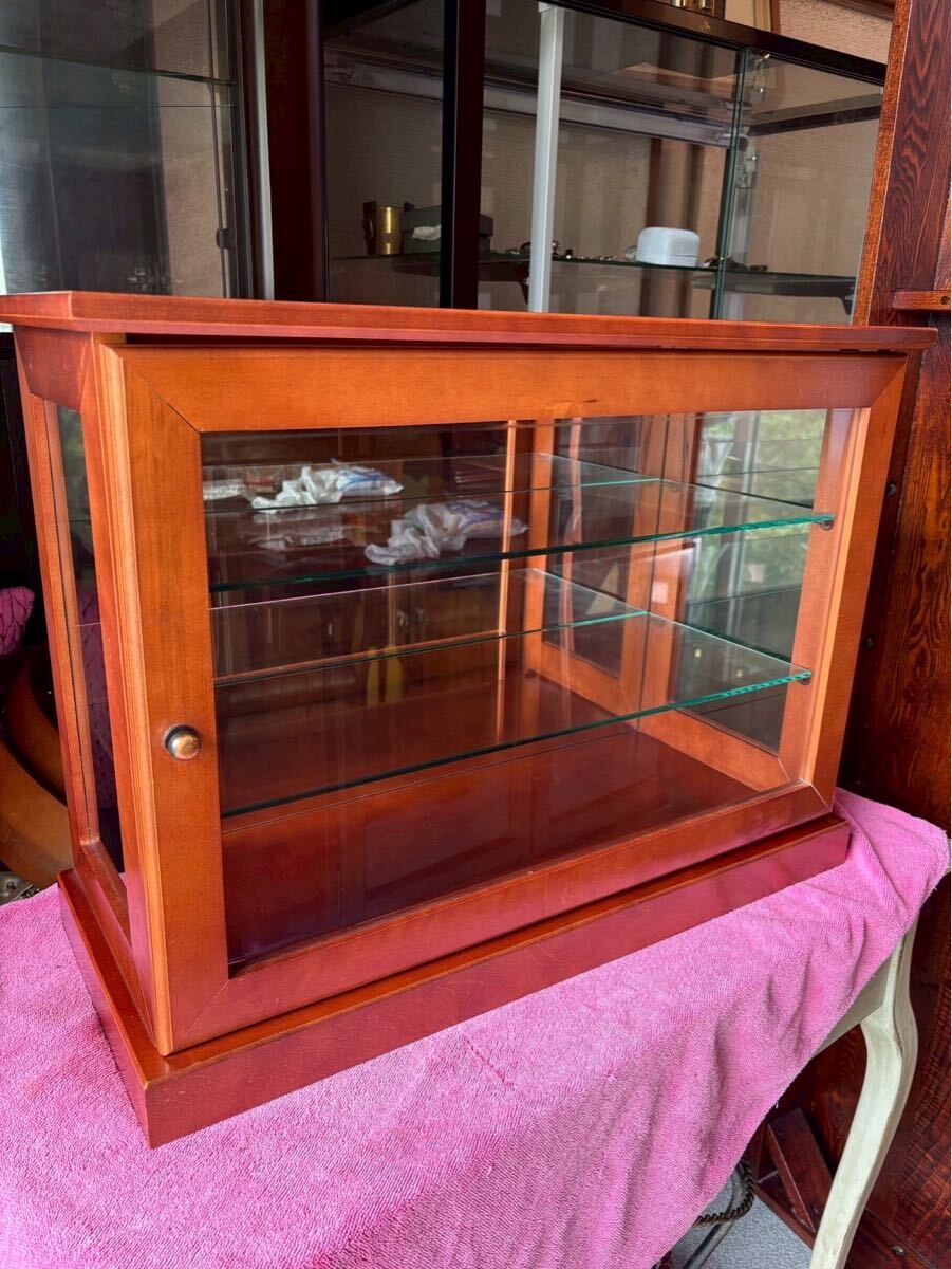 - 木製ガラスショーケース 高級什器 台湾製 ヴィンテージコレクションケース W60 アンティーク 昭和レトロ 飾り棚 ディスプレイ