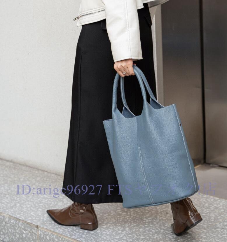 > ★新品本牛革 トートバッグ 本革 ユニセックス レディース A4 通勤バッグ 弁当 収納 通勤通学 レザー 大容量ヘイズブルー