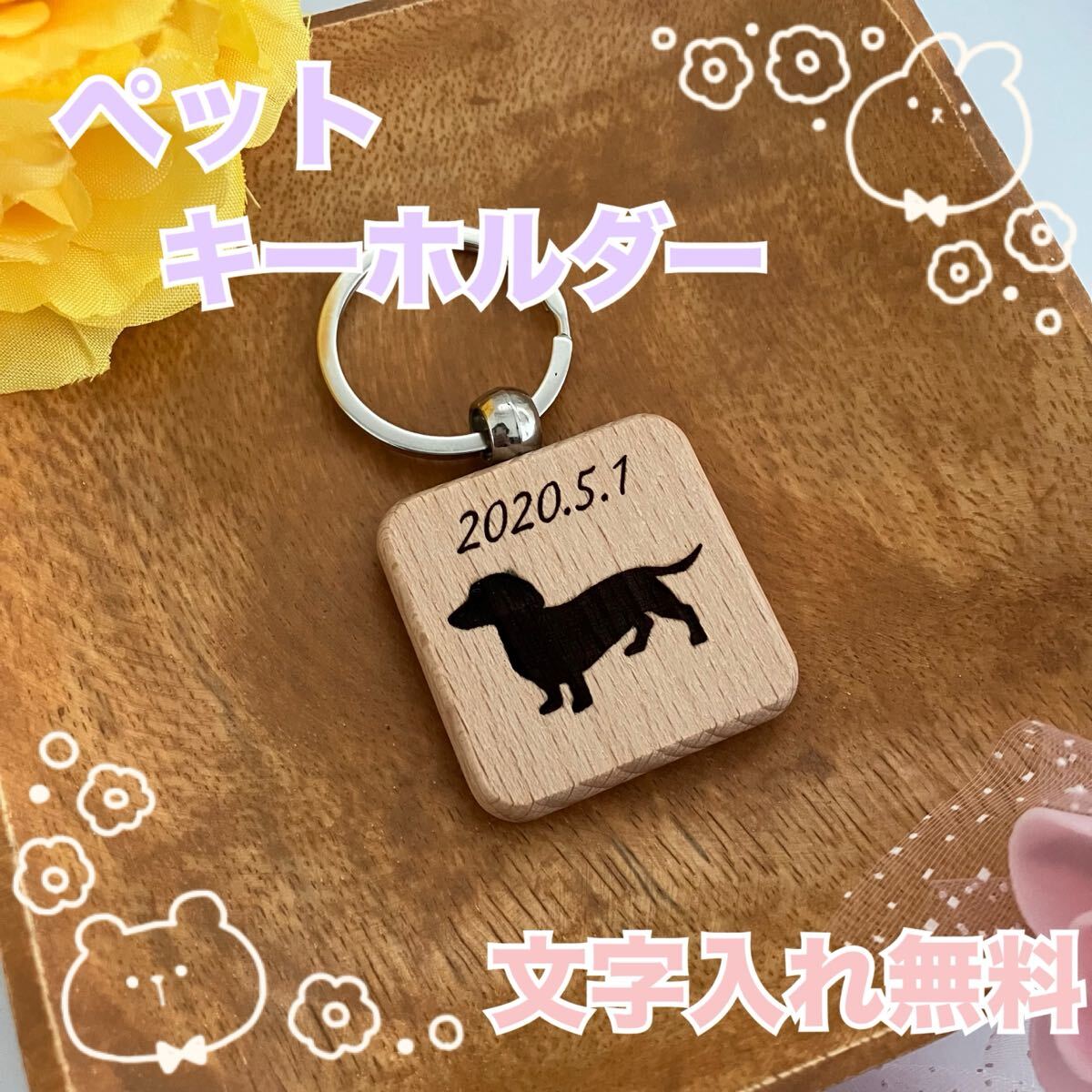 - ペット ペット用 犬 猫 キーホルダー 木製 キーリング 両面デザイン 記念 メモリアル