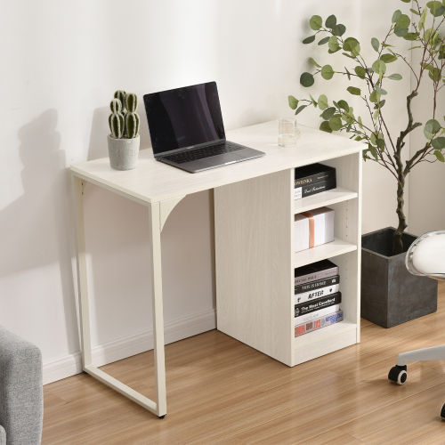 - 【ホワイト】 パソコンデスク 3段シェルフ付 オフィスデスク 簡易デスク 木製 ミシン台 学習机 アジャスター付き