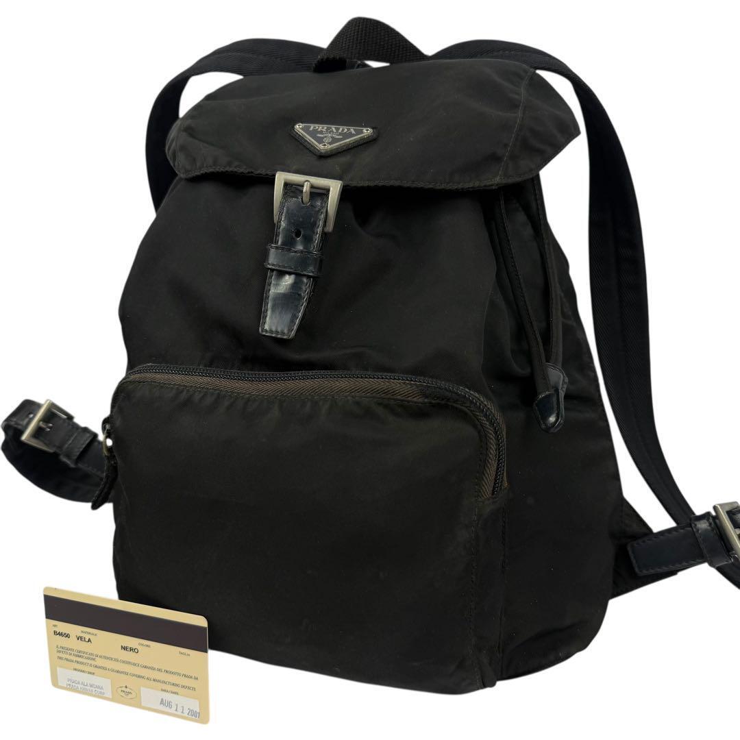 - 【Gカード付き】PRADA プラダ リュックサック バックパック ナイロン 三角ロゴ ベルト付き 三角ロゴ ブラック 黒 白タグ B4650 LAMPOジップ