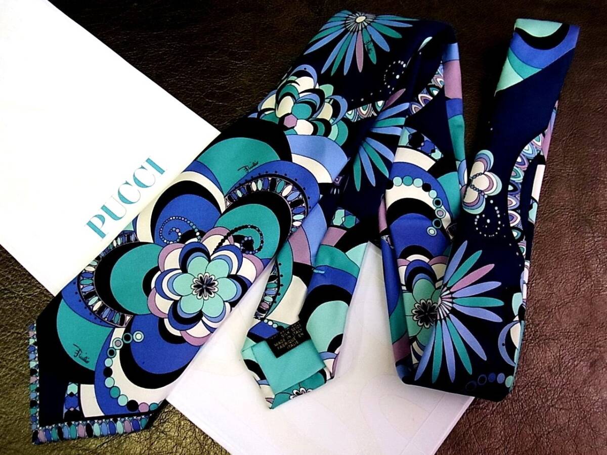 - ●bv2926●良品●エミリオプッチ【ロゴ入・花】ネクタイ