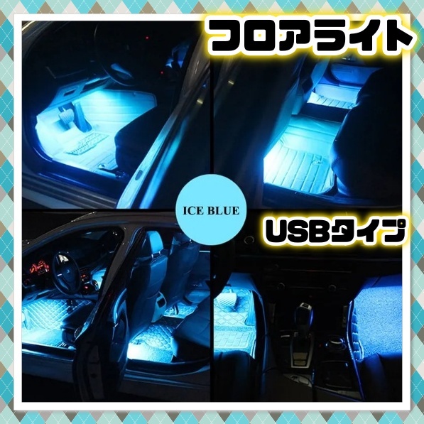 > 2本 12V 24V LED フロアライト アイスブルー USB電源 車内 装飾 足元 内装 間接照明 フットランプ LEDテープ イルミ 増設 電装パーツ 汎用