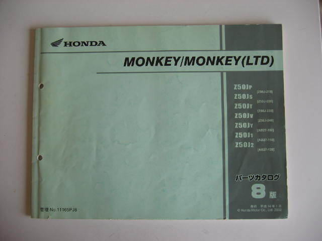 > ★ パーツカタログ ホンダ HONDA モンキー MONKEY LTD リミテッド Z50J AB27 8版 発行 平成14年1月 11165PJ8 中古品 ★