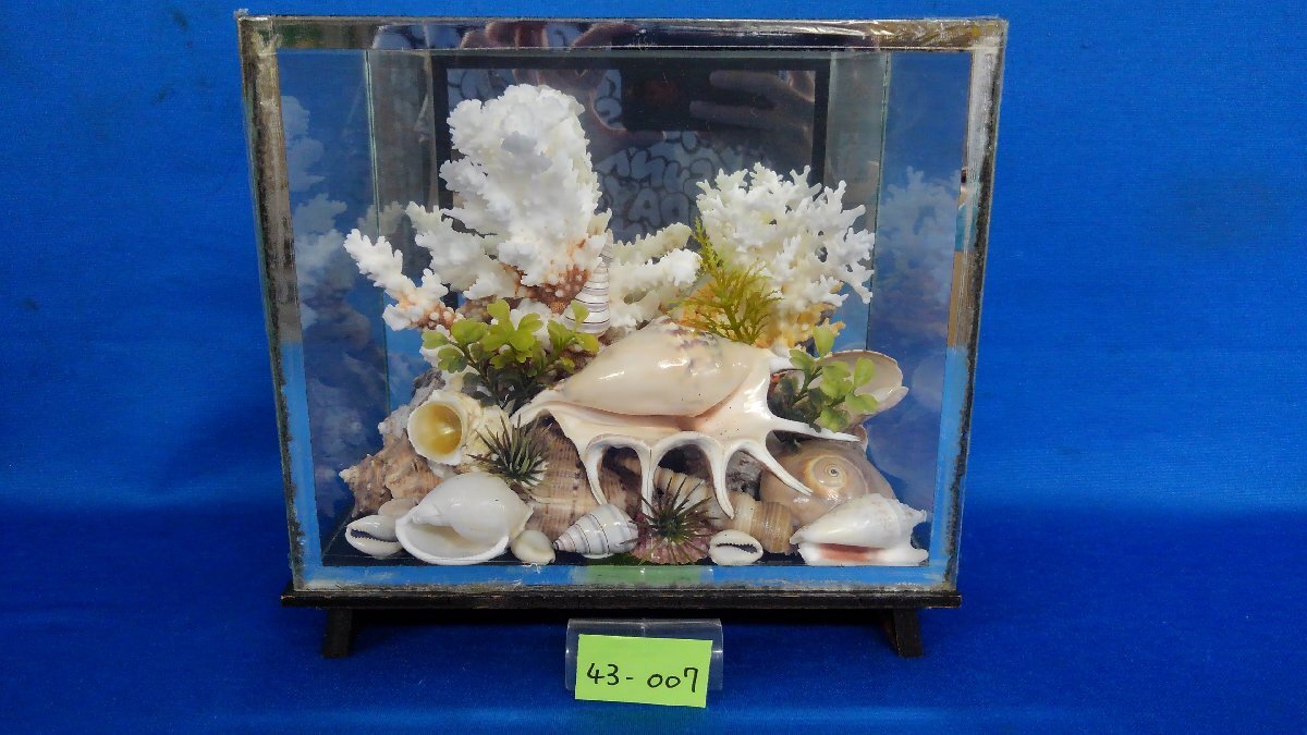 > ★43―007★置物 貝殻 サンゴ 飾り ガラスケース入り オブジェ インテリア 玄関 ビンテージ 昭和レトロ ディスプレイ 工芸品[80]