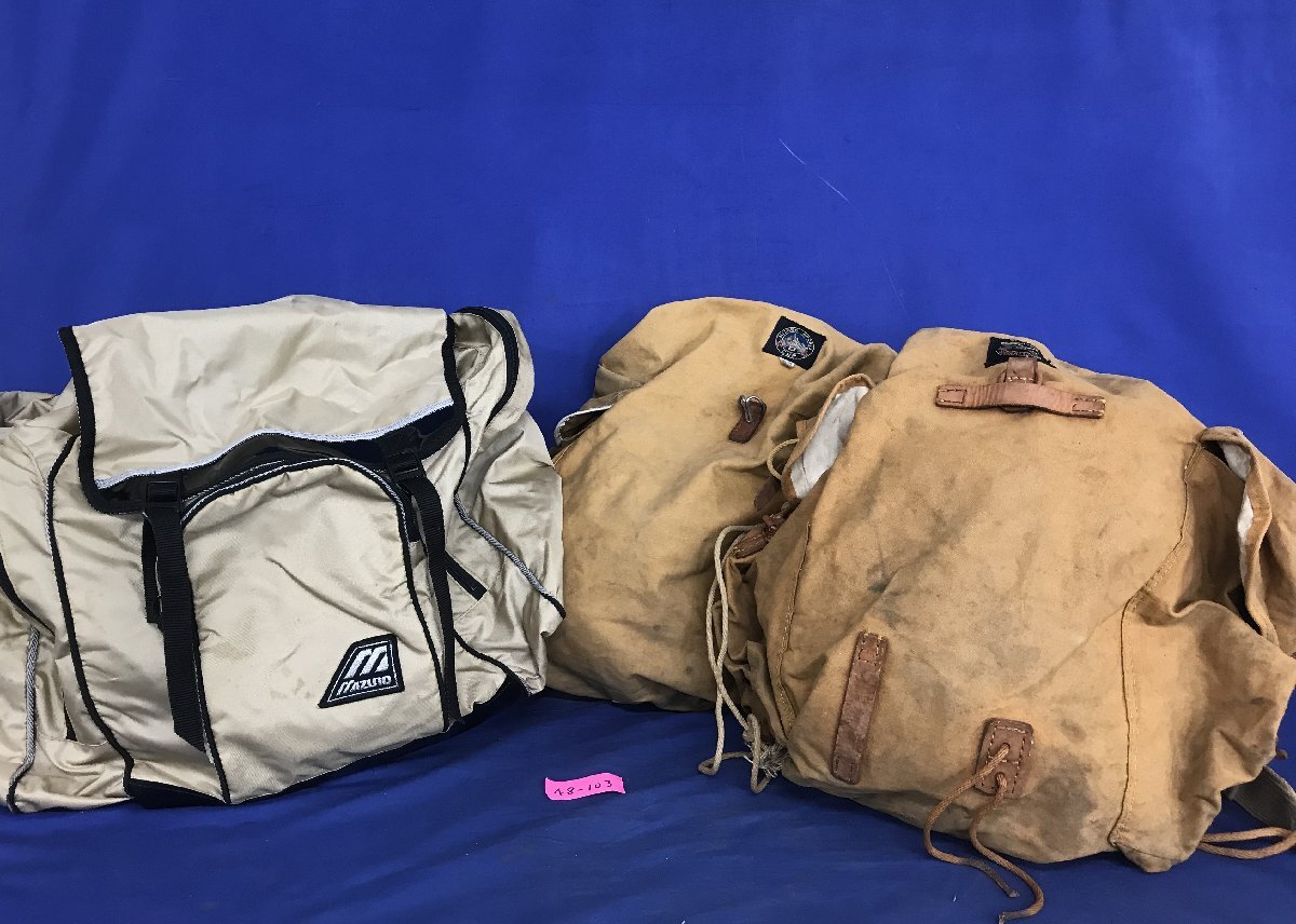 > ★48―103★登山リュック ミズノ製2点/SSK製/リュックサック3点まとめ/レトロ ビンテージ 帆布 キャンパス 当時物 アウトドア[100]
