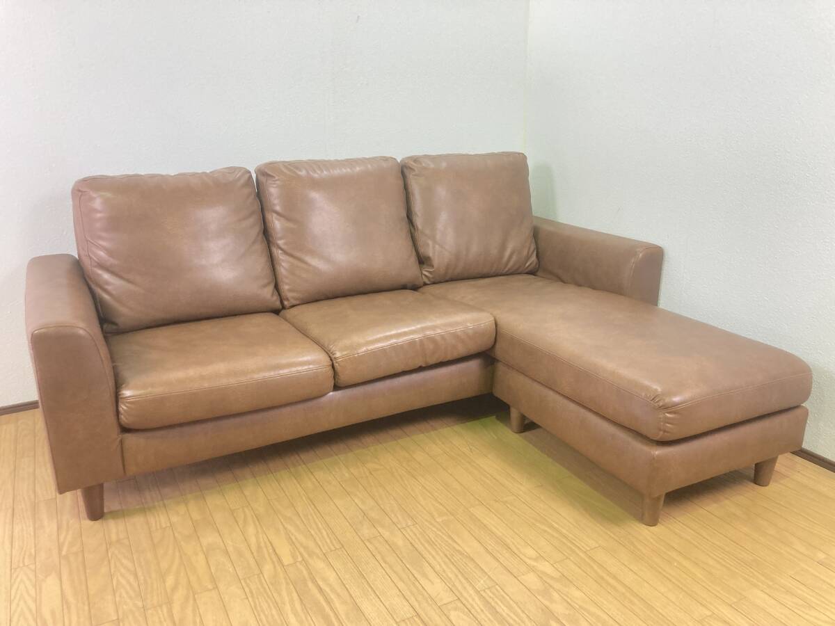 > ★ヴィンテージ風★ カウチソファ 3人掛け 三人掛け オットマン ソファ 茶 ブラウン コーナーソファ 激安 格安 肘置き 大阪 引き取り可