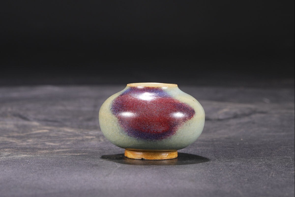 - 「宋 鈞窯 陶磁器 紫紅斑 水盂」染付 置物 擺件 古賞物 中国古美術 旧蔵出