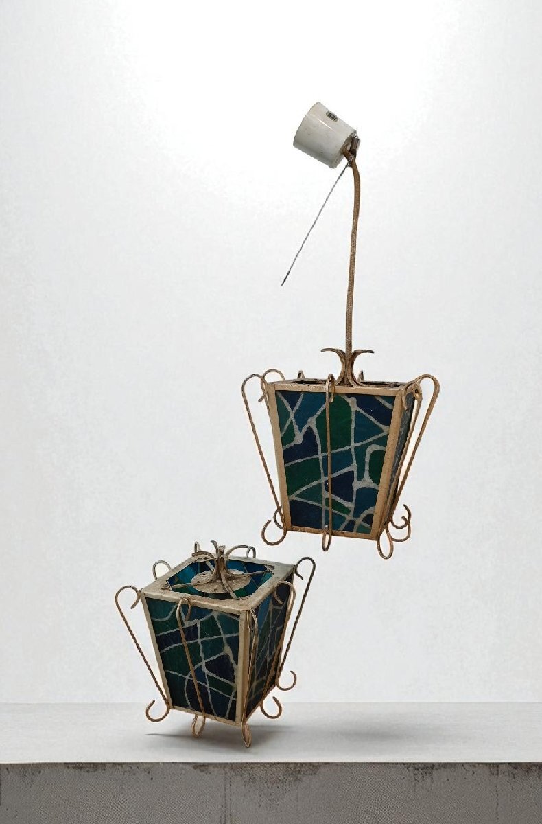 > ○ナショナル ステンドグラス柄 ガス灯風の吊り照明 ライト 2点セット レトロモダン ヴィンテージ 古道具のgplus広島 2509i