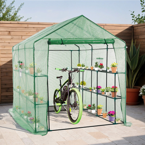 - ビニール温室 大型 カバー付き W244cm×D183cm×H213cm 温室 左右2段 ベランダ 家庭用 ビニールハウス 家庭菜園 ガーデンハウス