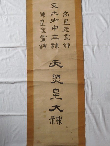 - 【印刷】掛け軸 天之御中主神 高皇産霊神 神皇産霊神 造化三神 日本神話 古事記 天地開闢 創造神 天照皇大神 紙本