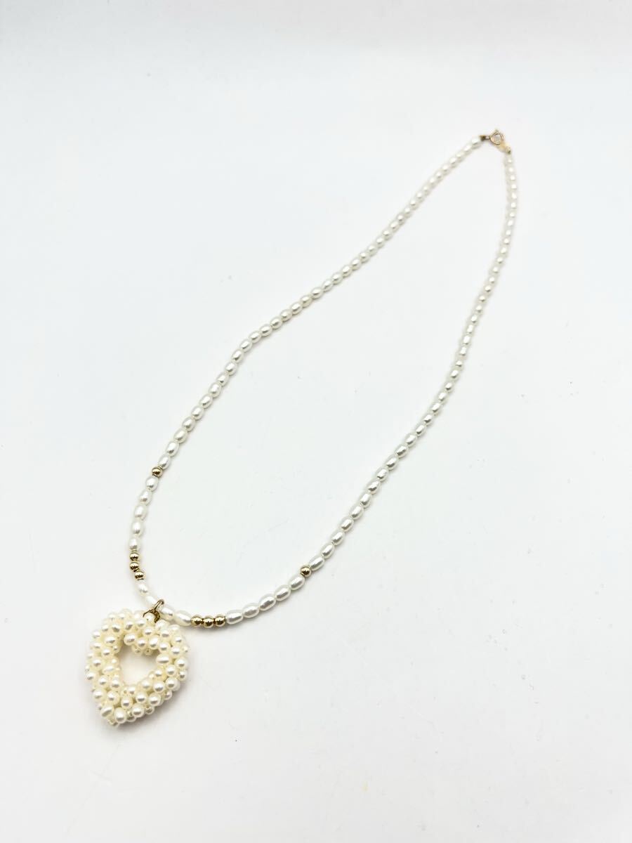 - 淡水真珠 14K ゴールド 真珠 ネックレス ハートトップ 約40cm 約9.4g (9-21)