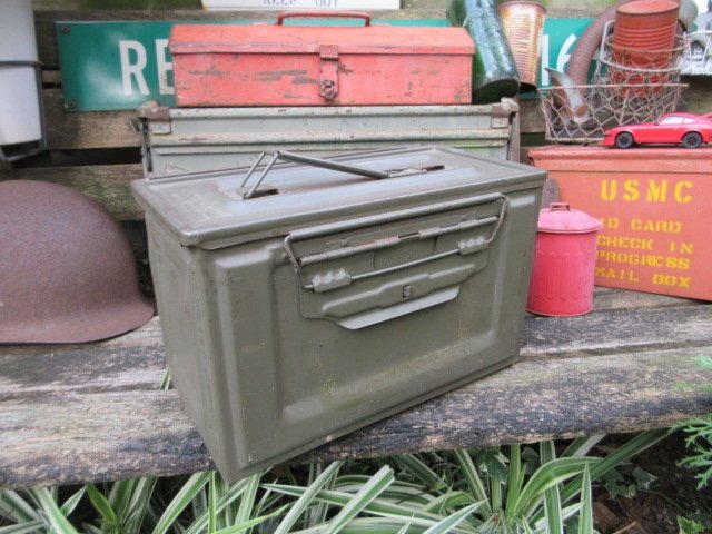 - F1980★12.7mm重機関銃 ミリタリー ビンテージ弾薬箱(1940年代~)/スチール製ステンシル弾薬箱AMMO BOX(M) 50口径機関銃/ガレージUS缶