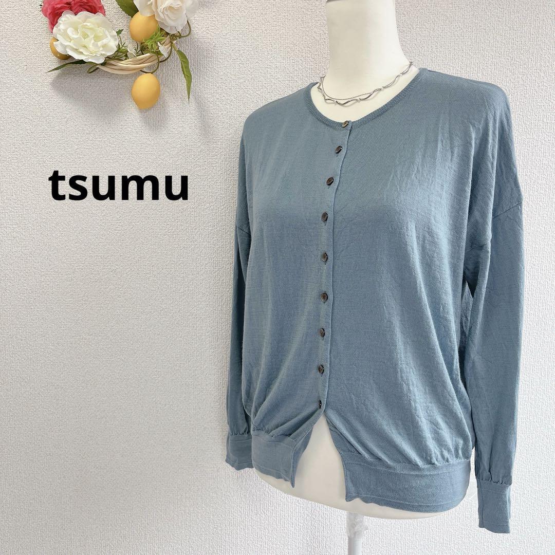 - ☆シンプル☆ tsumu ツム カーディガン 長袖 ウール 日本製 ブルーグレー F
