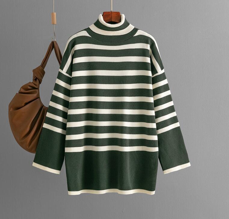 - 342 ニットセーターladiesレディース ◇ 魅惑Styleセクシー ◇sexy 上質 ボーダー柄 グリーン