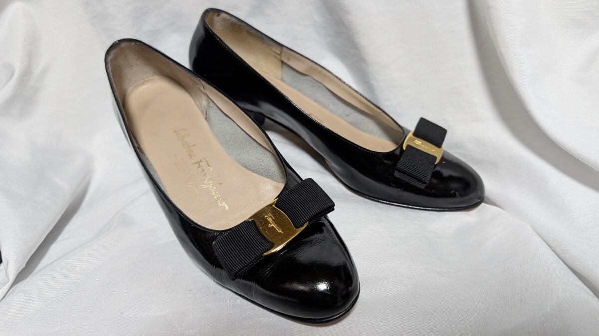 - Salvatore Ferragamo ヴァラ 8c エナメルブラック レトロ 難有 現状出品