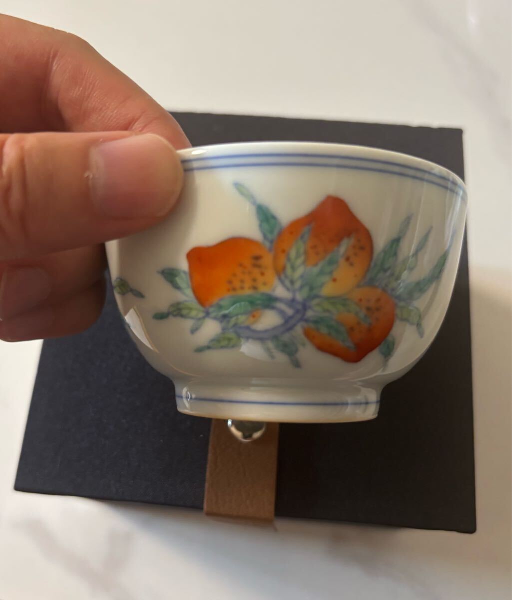 - 中国清時代 闘彩三多文茶碗 盃 豆彩 鬥彩 大清雍正年製在銘 官窯