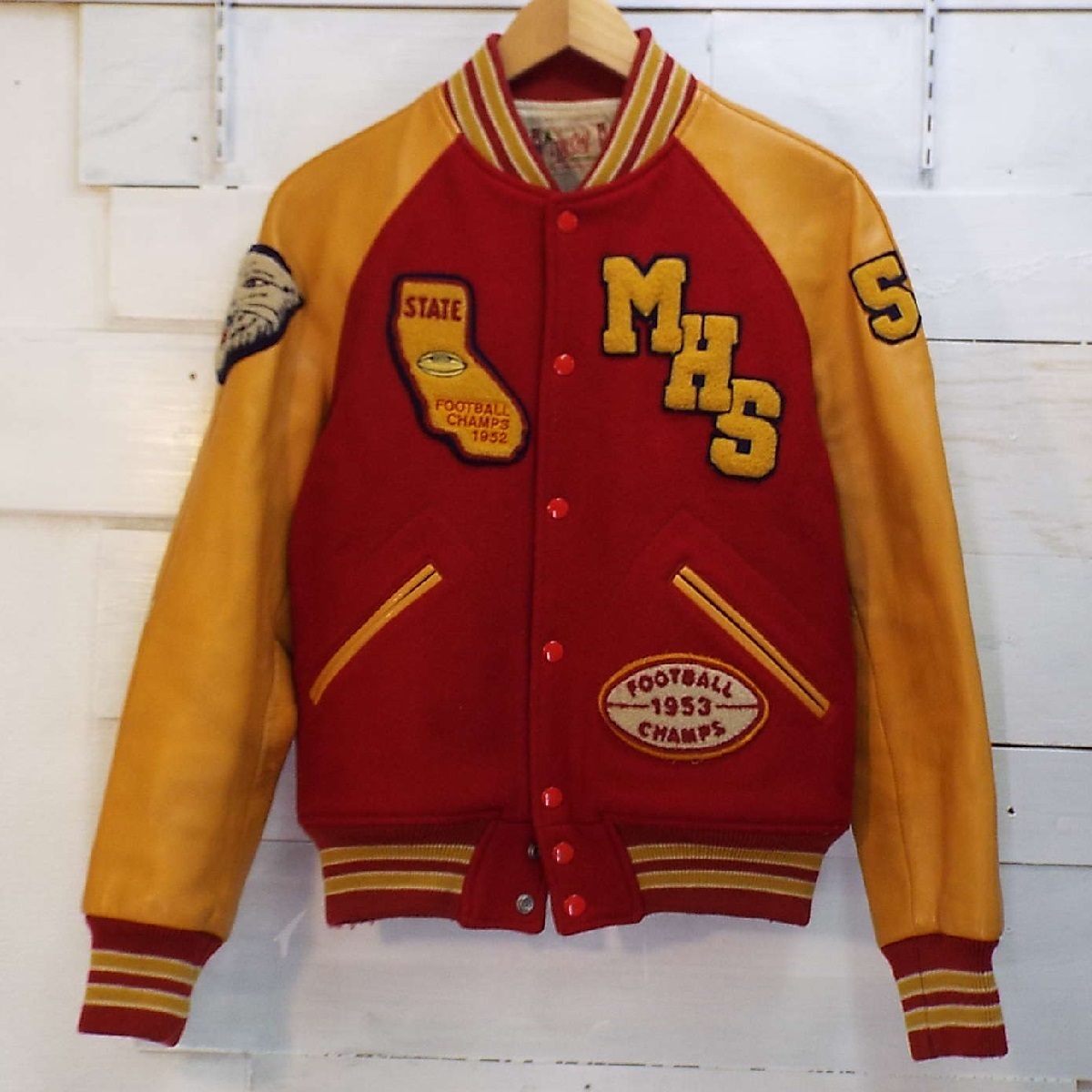 - T867〇McCOY SPORTS WEAR(マッコイスポーツウェア)スタジャン ボルドー×マスタード サイズ38