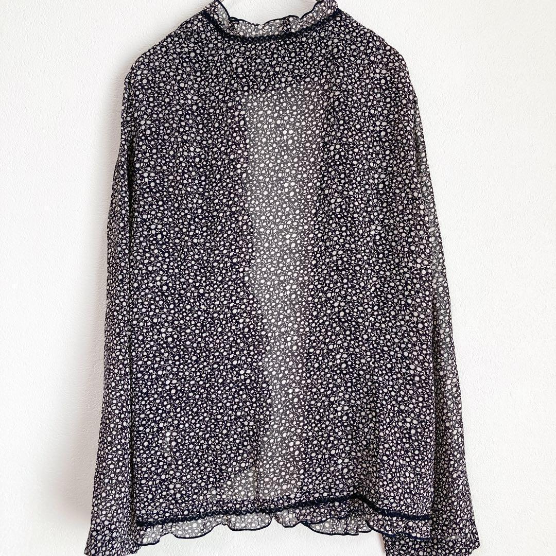 - 【美品】FRO HLICH(M)シアーカーディガン*花柄総柄*透け感*ボタンレス