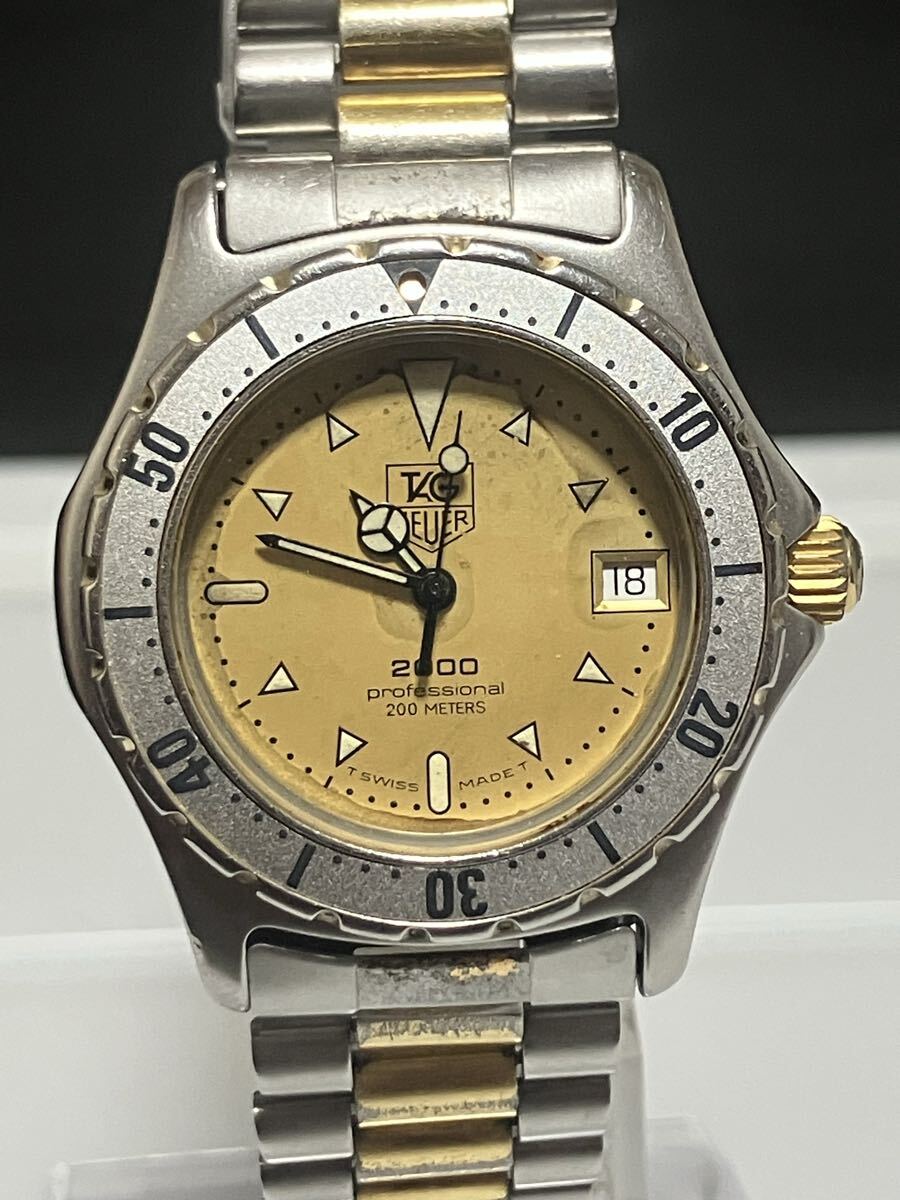 - 【動作品】TAG Heuer タグホイヤー 2000 Professional 200M Ref.974.013 メンズ腕時計 ゴールド文字盤 コンビブレス