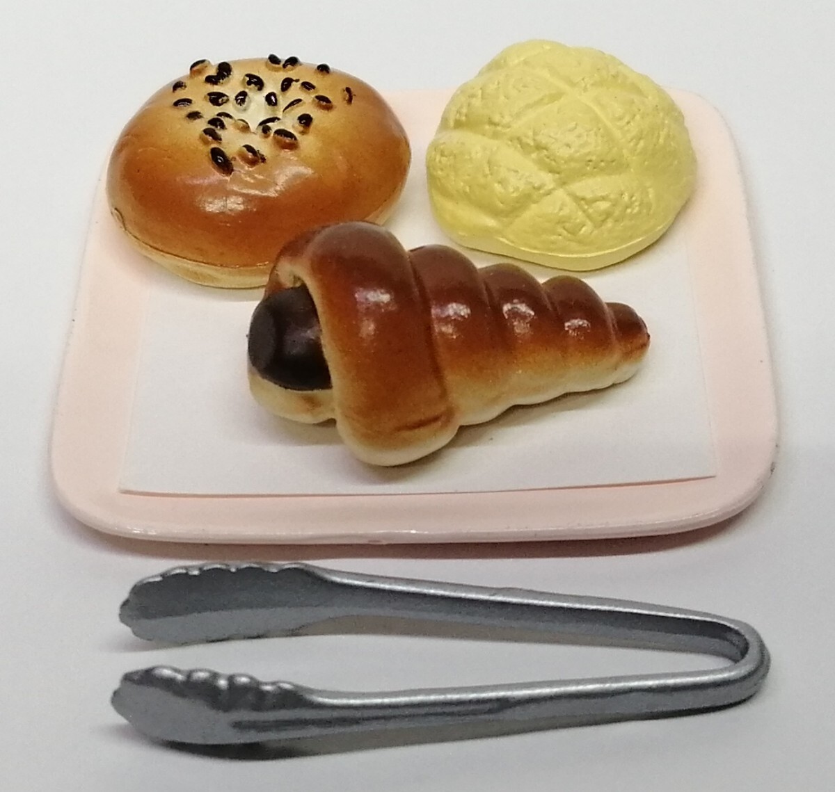 - 菓子パン ぷちサンプルシリーズ 街のデザート屋さん2 メロンパン あんぱん チョココロネ トング 敷き紙 トレー ミニチュア フィギュア
